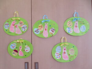 「イースターエッグ」が完成♪ 足形がかわいいうさぎさんになったね♪