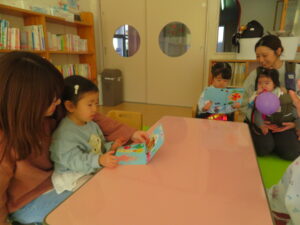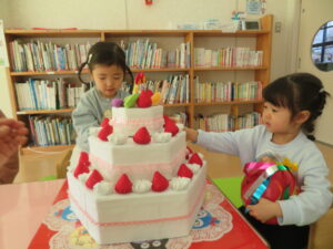 今日は12月のお誕生会でした★ 3歳のお誕生日を迎え、来月からは幼稚園♪ という2組の親子が参加してくれました(*^-^*) |
