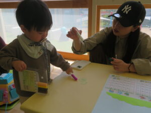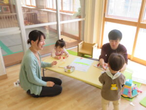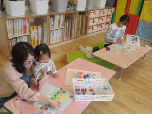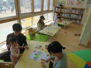 | 今日は子育て講習会 カレンダー作りの日です☆ 5組の親子が参加してくれました(^^♪ |
