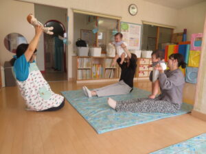 お母さん方にたくさん 体を動かしていただき 子ども達がとても良い表情で 触れ合いを楽しむ姿が印象的でした♡