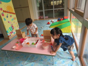 ママ達がお話を聞いている間 おままごとや車でいっぱい遊んだよ♪ |