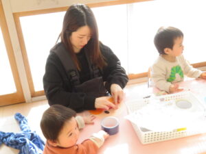 さっそく座ったり,よいっしょ!と持ち歩いたり…子ども達は大喜びでした♪