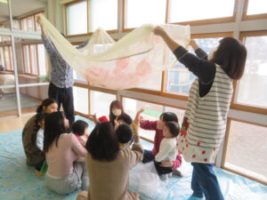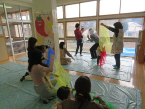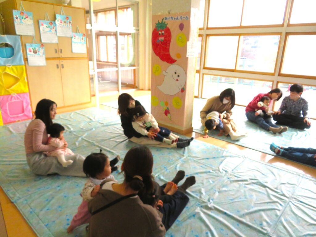 わらべうた遊びをして親子一緒に体を動かして遊びました(@^^)/~~~ |
