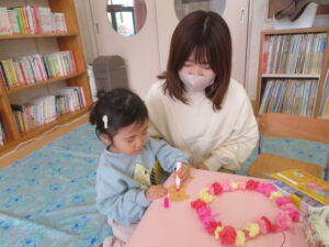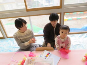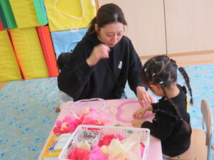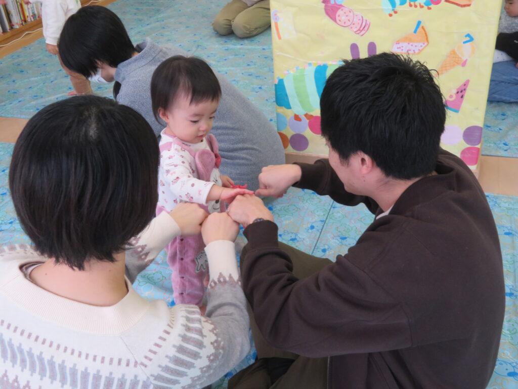 製作の後は… ふれあい遊び わらべうた遊び をして遊びました(*^^)v |