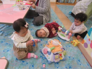 今日の「あかちゃんあそぼ」の日に5組の親子が参加しました(*^-^*)