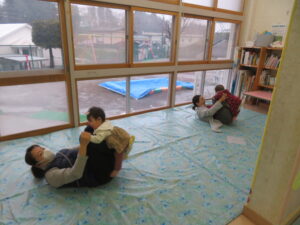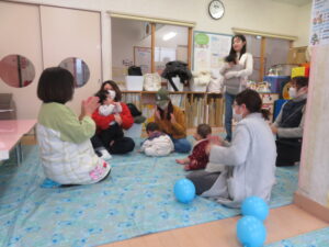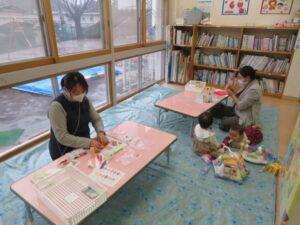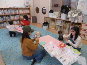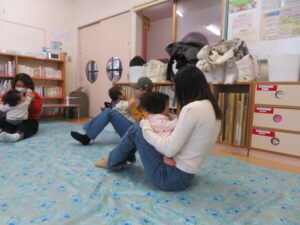 | 製作後は,親子一緒にふれあいあそびとわらべうた遊びをしました(*^-^*) | |